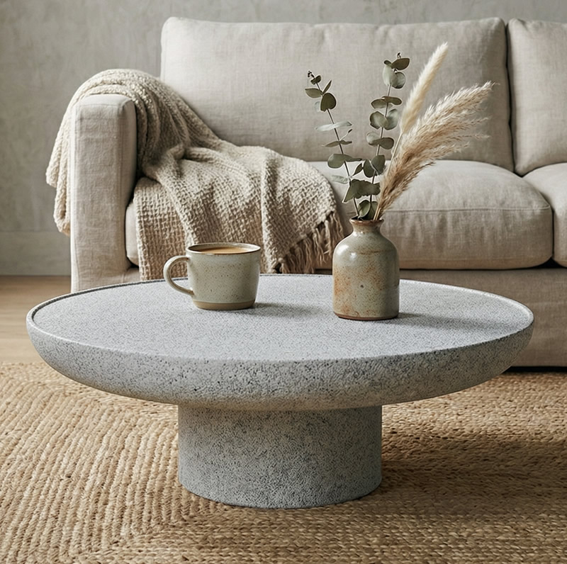 Hafif beton orta sehpa kategorisinde hem estetik hem fonksiyonel bir çözüm sunar.