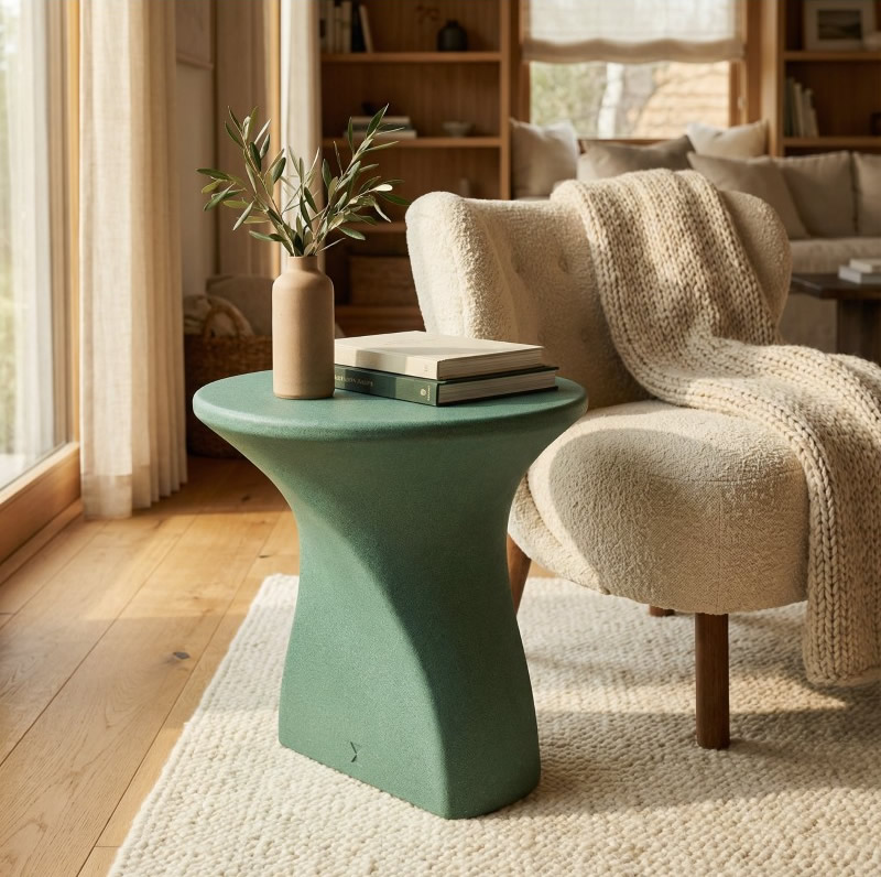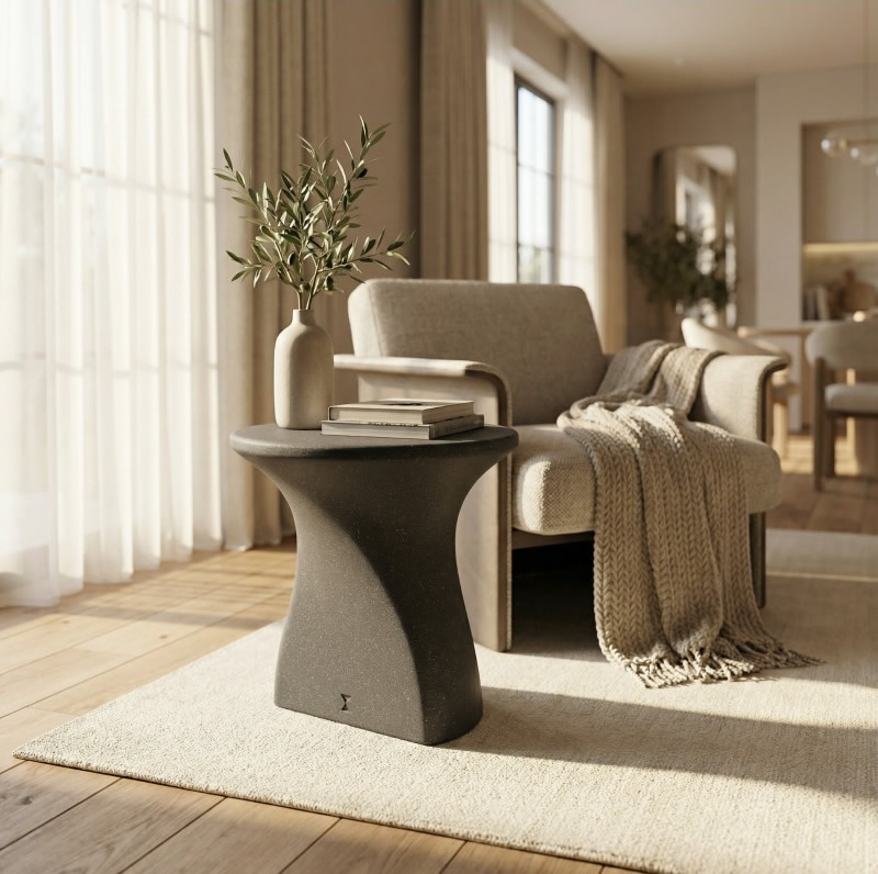 Vion Hafif Beton Yan Sehpa, Mazel Orbis kalitesiyle üretilmiş; estetik, dayanıklılık ve fonksiyonelliği tek bir formda buluşturan özel bir tasarım parçasıdır.